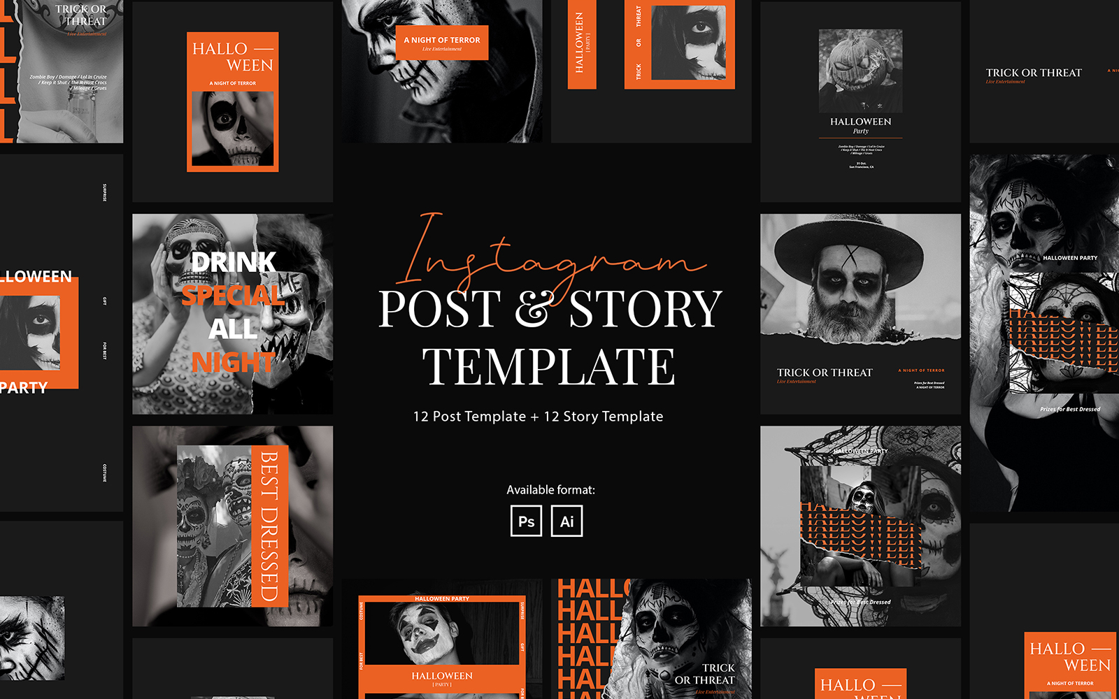 Download Шаблон для соцсетей "Halloween Party Instagram Post & Story Template for Social Media" / Halloween Party Instagram Post & Story Template for Social Media - Шаблон для соцсетей на тему графика instagram,post,story,elegant,modern,creative,brand,simple,template,event,party,halloween,halloween party,party event,instagram for halloween,trick or treat