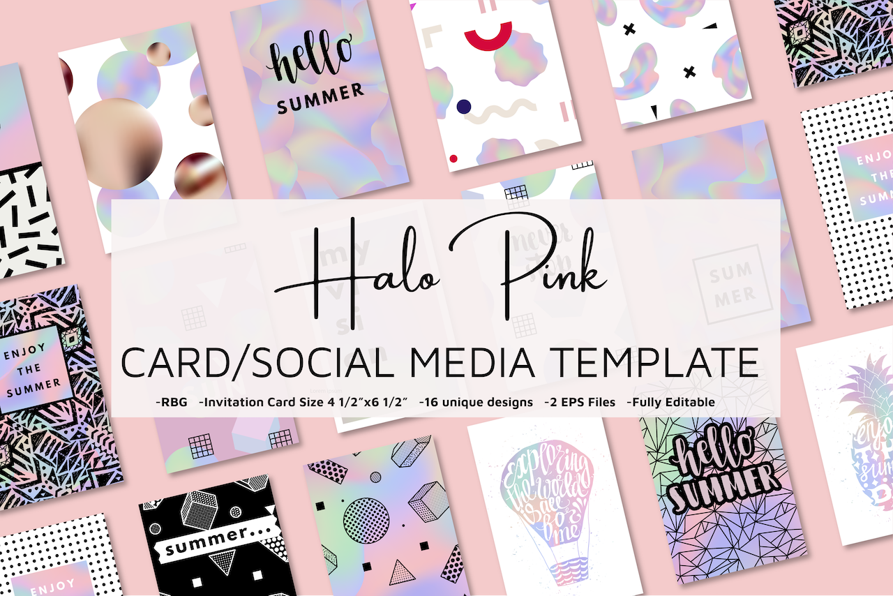 Download Фирменный стиль "Halo Pink Holographic - Corporate Identity Template" / Halo Pink Holographic - Corporate Identity Template - Фирменный стиль на тему графика instagram,stories,pink,photoshop,ads,blogger,templates,template,creative,colourful,modern,graphic,influencer,facebook,holographic