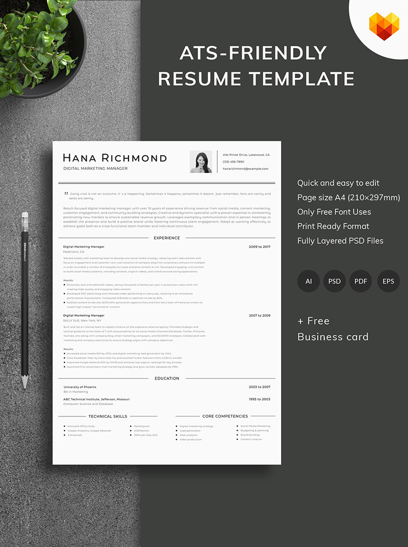 Download Резюме "Hana Richmond - Digital Marketing Manager Resume Template" / Hana Richmond - Digital Marketing Manager Resume Template - Резюме на тему графика digital marketing online busines inbound social media consultancy agent specialist planning consultation strategy strategic consultant consulting advertising ads service market advertise mana