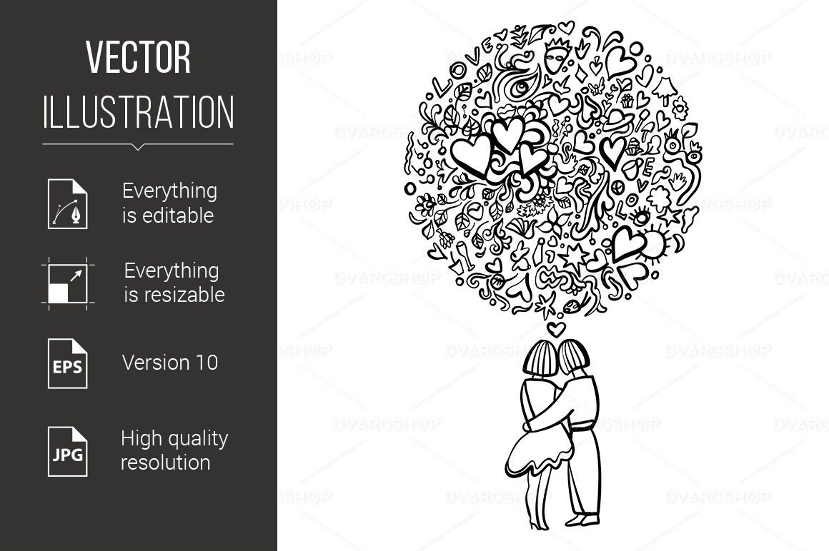 Download Vector "Hand-Drawn Love - Vector Image" / Hand-Drawn Love - Vector Image - Vector на тему графика love,abstract,black,couple,white,illustration,female,people,women,background,young,card,valentine,romance,lifestyle,character,silhouette,concept,woman