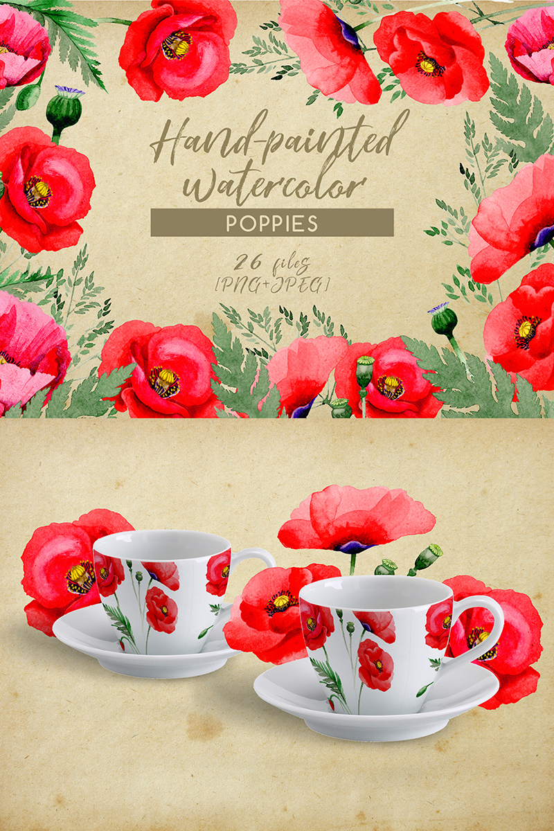 Download Иллюстрация "Hand-painted Poppies PNG Watercolor Set - Illustration" / Hand-painted Poppies PNG Watercolor Set - Illustration - Иллюстрация на тему графика watercolor illustration delicate red drawing background textile colorful drawn paint leaf plant wildflower seasonal poppy foliage flower sprout stem summer