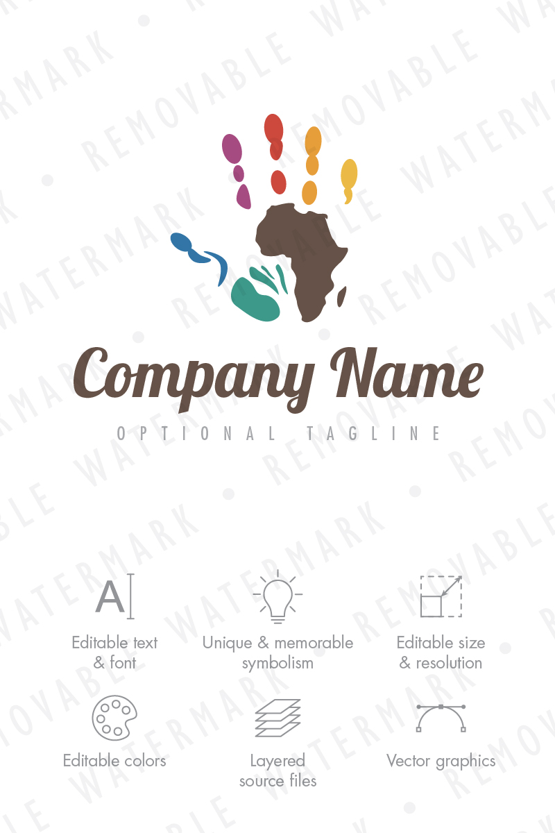 Download Шаблон логотипа "Hands for Africa Logo Template" / Hands for Africa Logo Template - Шаблон логотипа на тему графика community art world life people hope print help hand human africa aid map finger humanitarian legacy charity logo design template