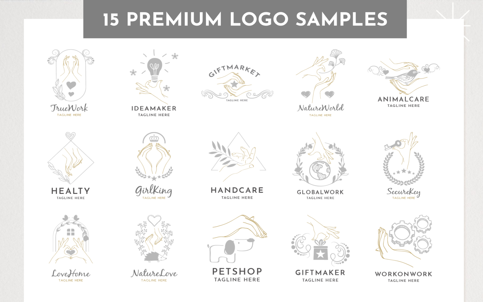 Download Шаблон логотипа "Hands Logo Template" / Hands Logo Template - Шаблон логотипа на тему графика hand,hands,gesture,poses,logo,femine,line,art,template,elegant,assets,body,palms,fingers,handmade,made,by,lady,handholding