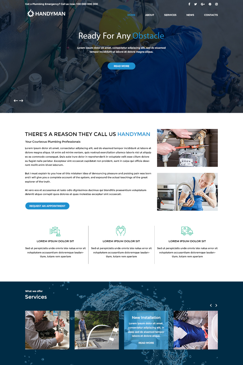 Download PSD шаблон "Handyman - Plumbing PSD Template" / Handyman - Plumbing PSD Template - PSD шаблон на тему сантехника plumbing theme template psd photoshop
