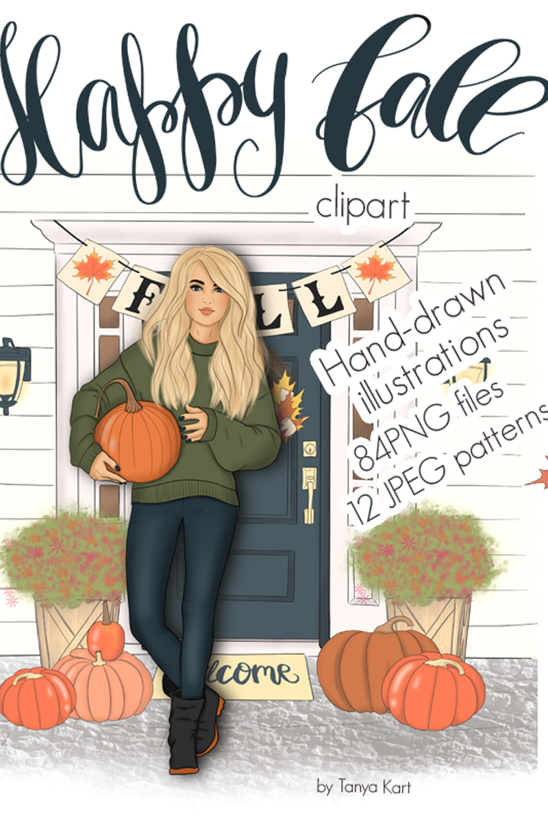 Download Иллюстрация "Happy Fall Autumn Design Kit - Illustration" / Happy Fall Autumn Design Kit - Illustration - Иллюстрация на тему графика happy fall design illustrations seamless patterns plant wreath autumn thanksgiving girls orange pumpkin vegetable october halloween planner scrapbook stickers blog