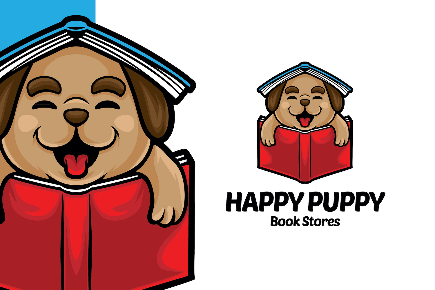 Download Шаблон логотипа "Happy Puppy Book Store Logo Template" / Happy Puppy Book Store Logo Template - Шаблон логотипа на тему графика logo,logomascot,mascot,logotemplate,character,illustration,vector,graphic,dog,puppy,book,bookstore,library
