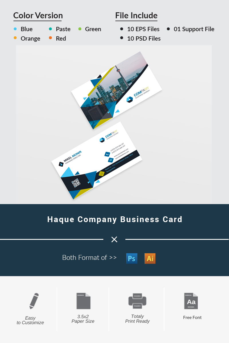 Download Фирменный стиль "Haque Company Business Card - Corporate Identity Template" / Haque Company Business Card - Corporate Identity Template - Фирменный стиль на тему графика black blue business card design clean style corporate creative cyan elegant green line minimalist modern template orange personal photoshop print