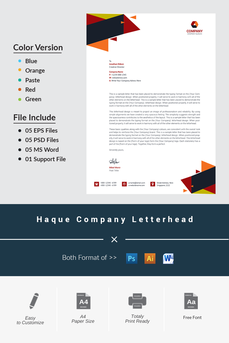 Download Фирменный стиль "Haque Company Letterhead - Corporate Identity Template" / Haque Company Letterhead - Corporate Identity Template - Фирменный стиль на тему графика black blue both side design business card letterhead creative flyer graphic green landscape letterhead design logo magazine modern official print