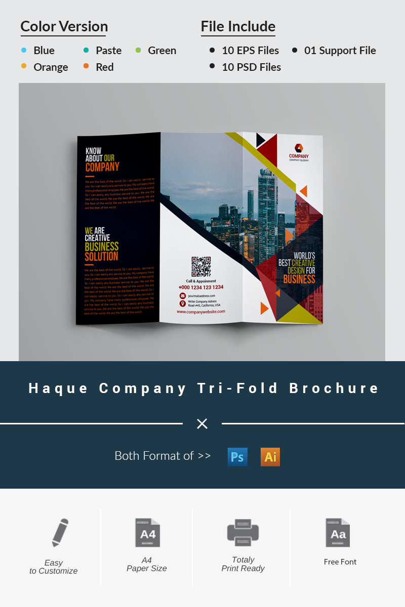 Download Фирменный стиль "Haque Company Tri-Fold Brochure - Corporate Identity Template" / Haque Company Tri-Fold Brochure - Corporate Identity Template - Фирменный стиль на тему графика art blue brochure colorful computer corporate creative graphics green hi-quality id kit internet lif let logo magazine modern official professional