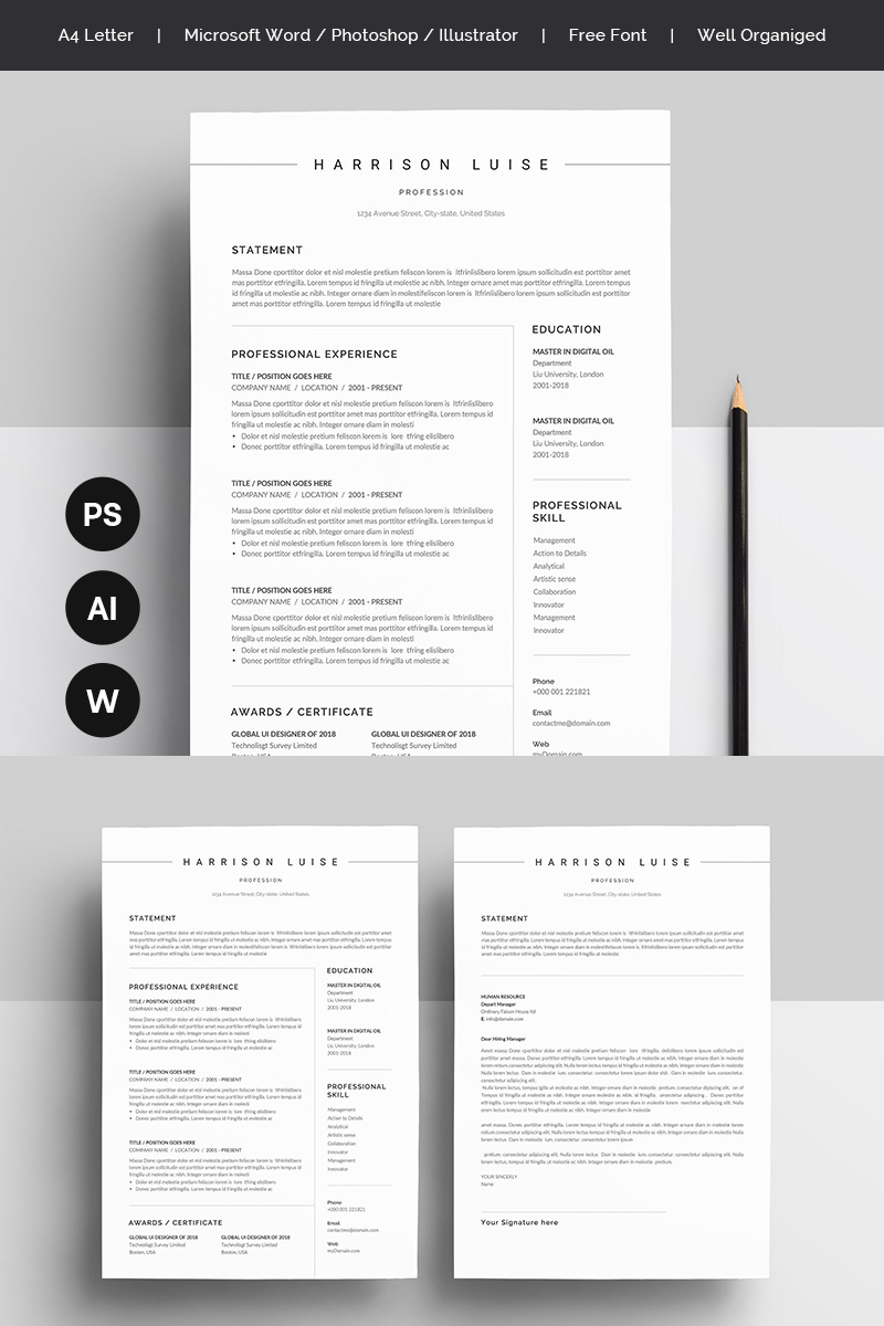 Download Резюме "Harrisons Luise Resume Template" / Harrisons Luise Resume Template - Резюме на тему графика a4 black bright career clean cv resume cover letter creative curriculum vitae design docx editable elegant job light minimalist professional
