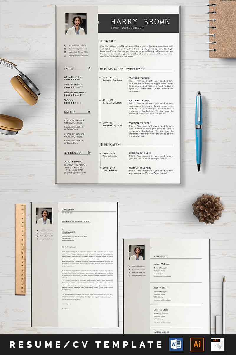 Download Резюме "Harry Resume Template" / Harry Resume Template - Резюме на тему графика layout,a4,resume,clean,cv,cover,creative,curriculum,vitae,design,template,employment,job,modern,professional,simple,student,portfolio,career,templates