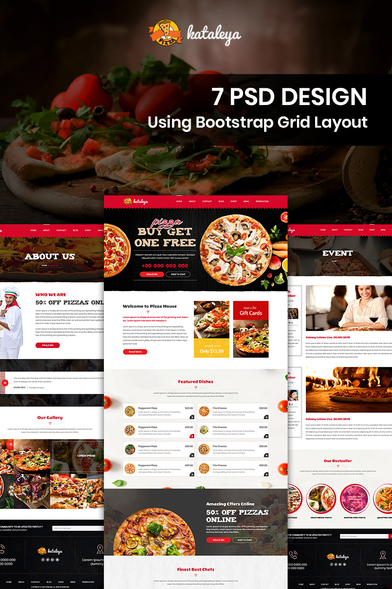 Download PSD шаблон "Hataleya - Pizza PSD Template" / Hataleya - Pizza PSD Template - PSD шаблон на тему графика pizza food restaurant vegetarian