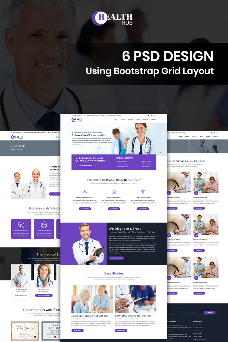 Download PSD шаблон "Health Hub - Healthcare PSD Template" / Health Hub - Healthcare PSD Template - PSD шаблон на тему медицина health medical doctor theme template psd photoshop