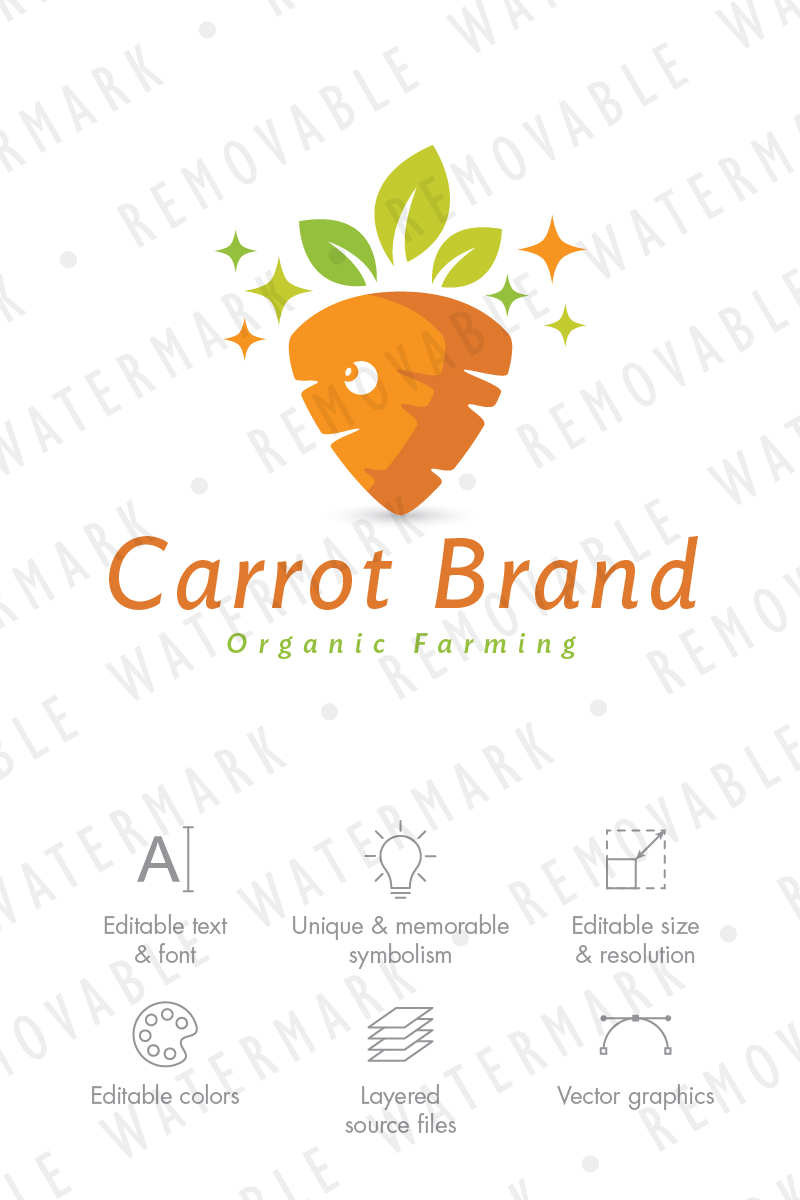 Download Шаблон логотипа "Healthy Carrot Logo Template" / Healthy Carrot Logo Template - Шаблон логотипа на тему графика food healthy farm organic eat nutrition vegetable carrot root crop vitamin mandrake gardening logo design template biotechnology agriculture pharmacy fertilizer