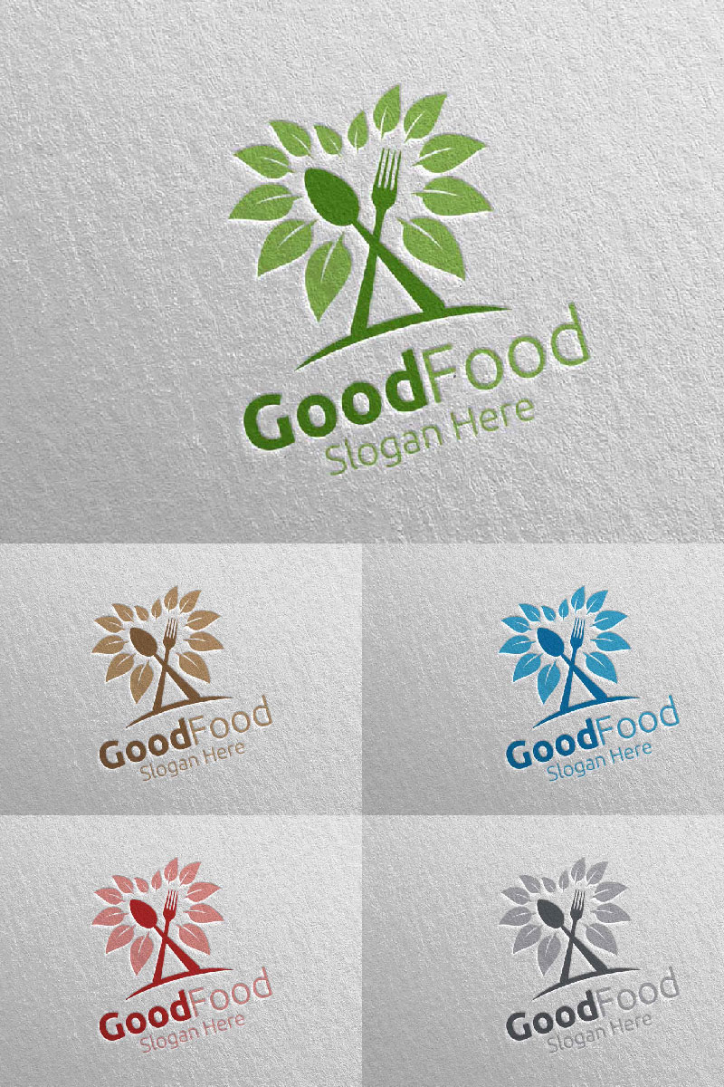 Download Шаблон логотипа "Healthy Food for Restaurant or Cafe 4 Logo Template" / Healthy Food for Restaurant or Cafe 4 Logo Template - Шаблон логотипа на тему графика food logo fork fresh cafe catering chef cooking restaurant knife diet eat eco green kitchen vegetarian spoon supplement nutrition vegan