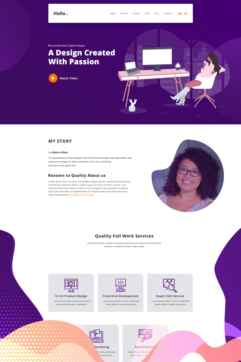 Download PSD шаблон "Hello - Personal Portfolio PSD Template" / Hello - Personal Portfolio PSD Template - PSD шаблон на тему портфолио дизайнера clean,creative,portfolio,freelancer,personal,responsive,agency,designer,development,illustrations,isometric,landing,page,psd,template,website,design,hello
