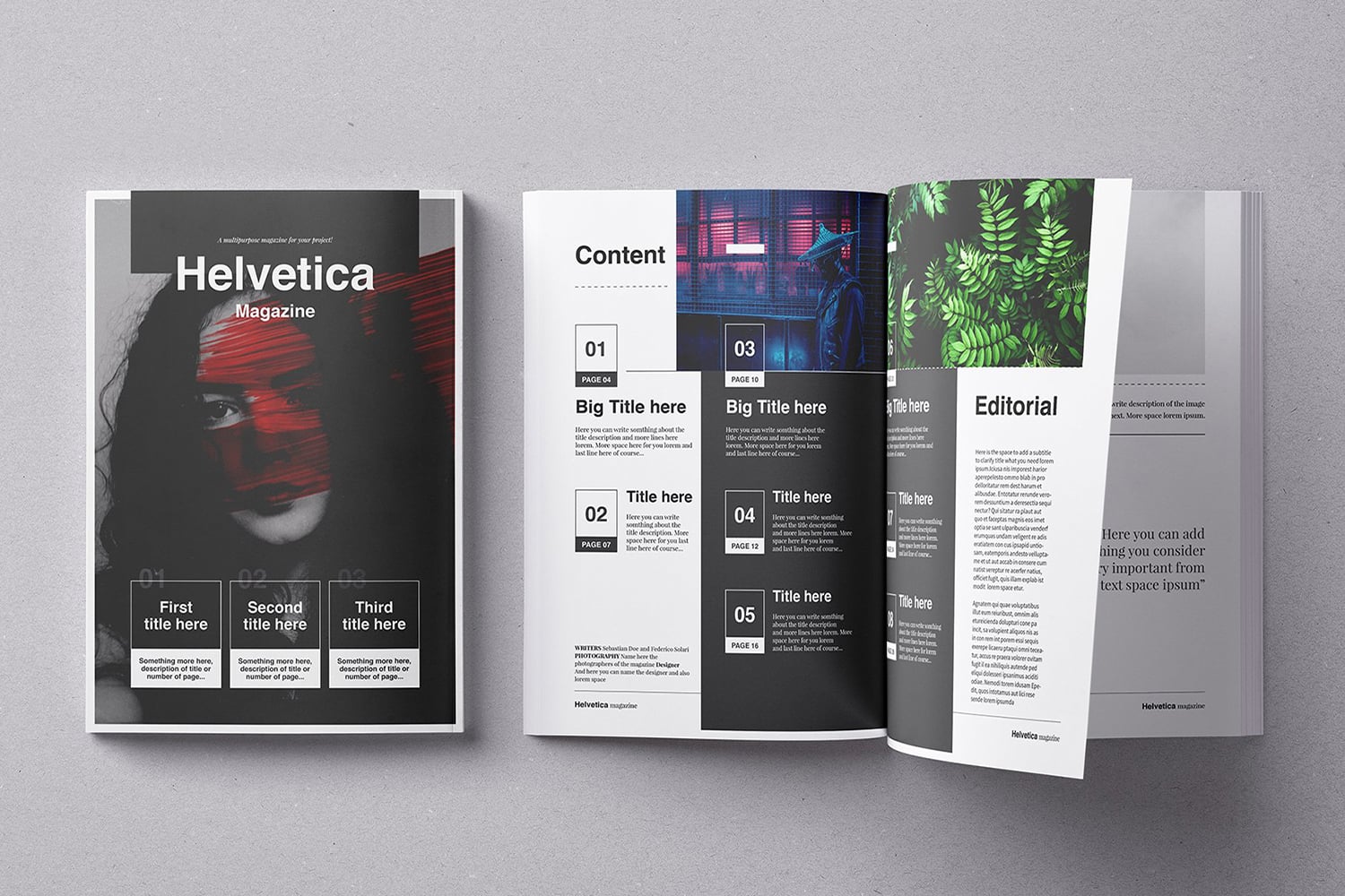Download Magazine Template "Helvetica Magazine Template" / Helvetica Magazine Template - Magazine Template на тему графика magazine,indesign,template,editorial,fashion,photo,porfolio,pdf,print,digital,architecture,game,index,section,organize,professional,style