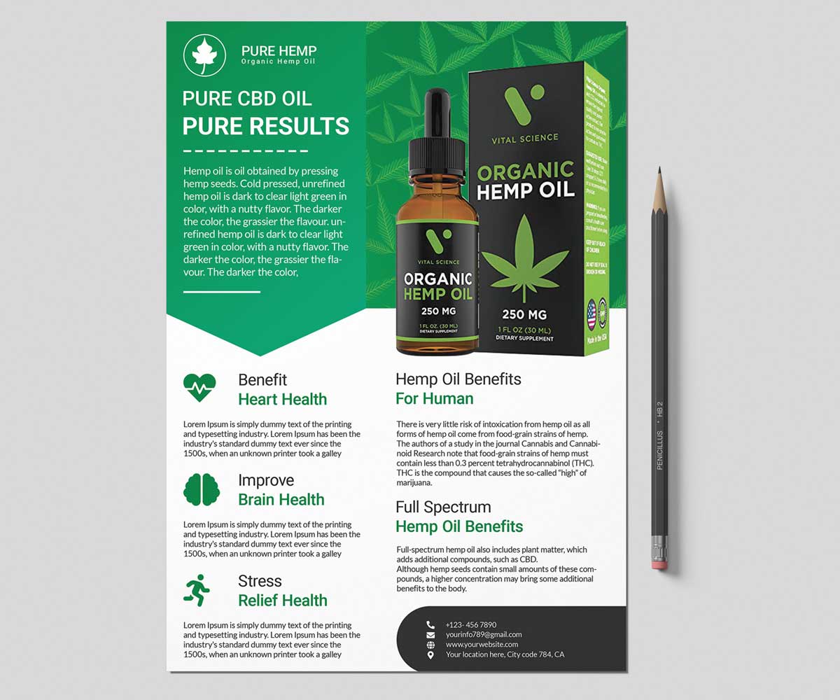 Download Фирменный стиль "Hemp Product Flyer - Corporate Identity Template" / Hemp Product Flyer - Corporate Identity Template - Фирменный стиль на тему графика hemp,flyer,cbd,oil,design,template,medical,leflate,cannabisexpo,cannabis,hempsheet,medicine,narcotic,nature,plant,product,sativaundefined