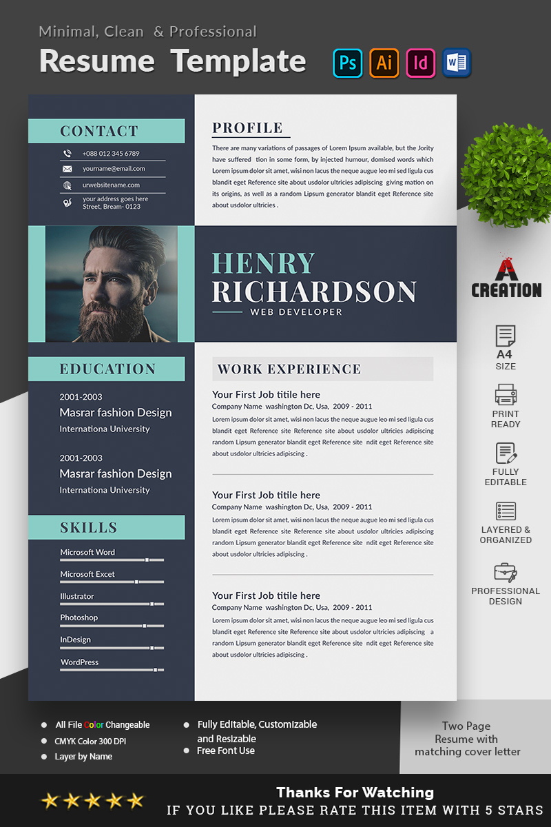 Download Резюме "Henry Richardson Web developer Resume Template" / Henry Richardson Web developer Resume Template - Резюме на тему графика resume a4 bundle classic clean cv cover letter job minimalist download layout template word simple application student objective 2page coverletter