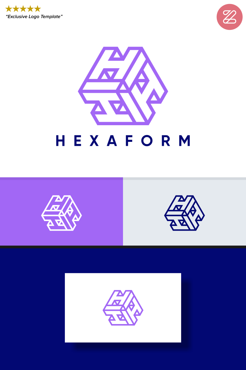 Download Шаблон логотипа "Hexaform geometric Logo Template" / Hexaform geometric Logo Template - Шаблон логотипа на тему графика h logo lineart outline modern futuristic 3d clean startup symbol icon company template