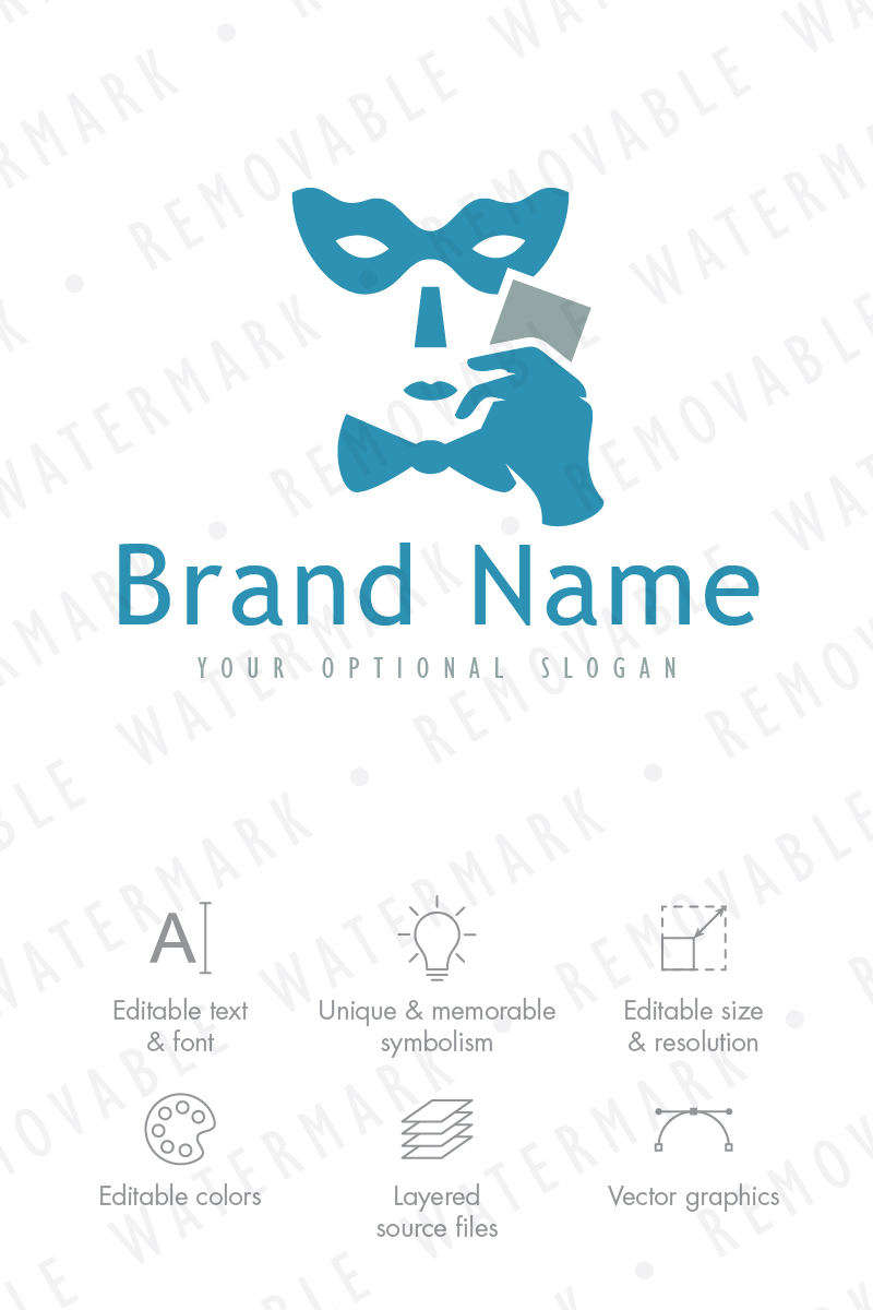Download Шаблон логотипа "Hidden Face Logo Template" / Hidden Face Logo Template - Шаблон логотипа на тему графика game face card masked poker identity simple mask serious casino betting logo design template club event art theater ticket entertainment