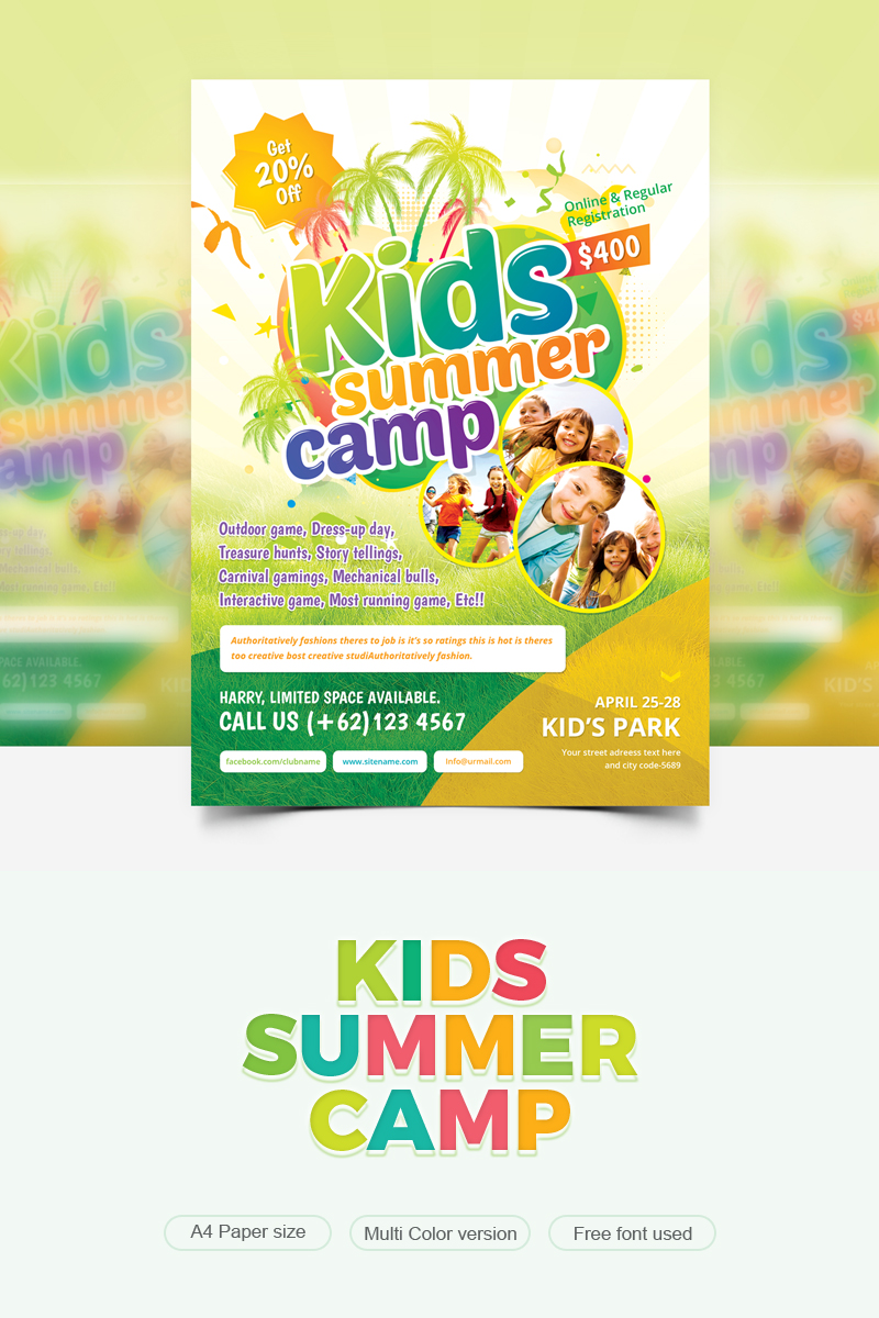Download Фирменный стиль "Holiday - Kids Summer Camp Flyer - Corporate Identity Template" / Holiday - Kids Summer Camp Flyer - Corporate Identity Template - Фирменный стиль на тему графика kids summer camp flyer school activity adventure boys camping child colorful fest festival girls holiday kid party play recreation spring