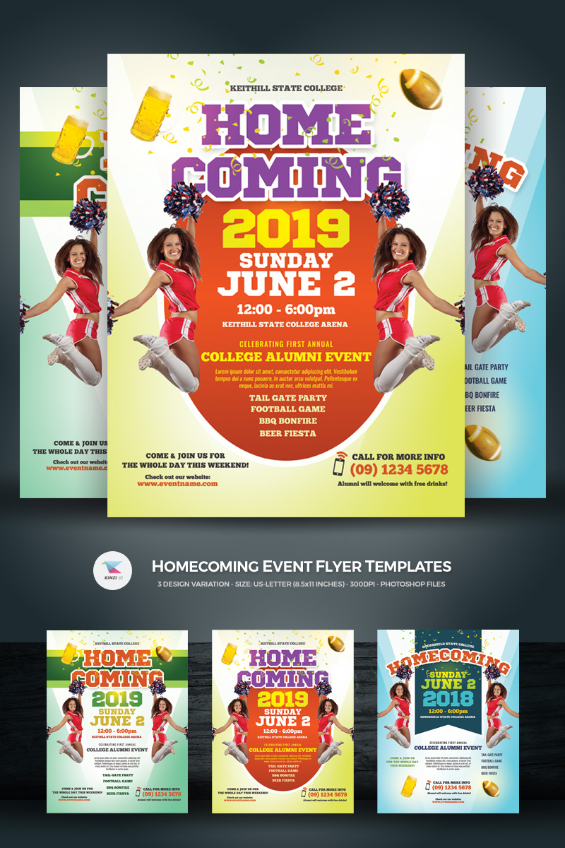 Download Фирменный стиль "Homecoming Event Flyers - Corporate Identity Template" / Homecoming Event Flyers - Corporate Identity Template - Фирменный стиль на тему графика ad advert alumni bbq beer bonfire cheer cheerleaders college flyer football game homecoming leaflet party students summer tail gate tailgate