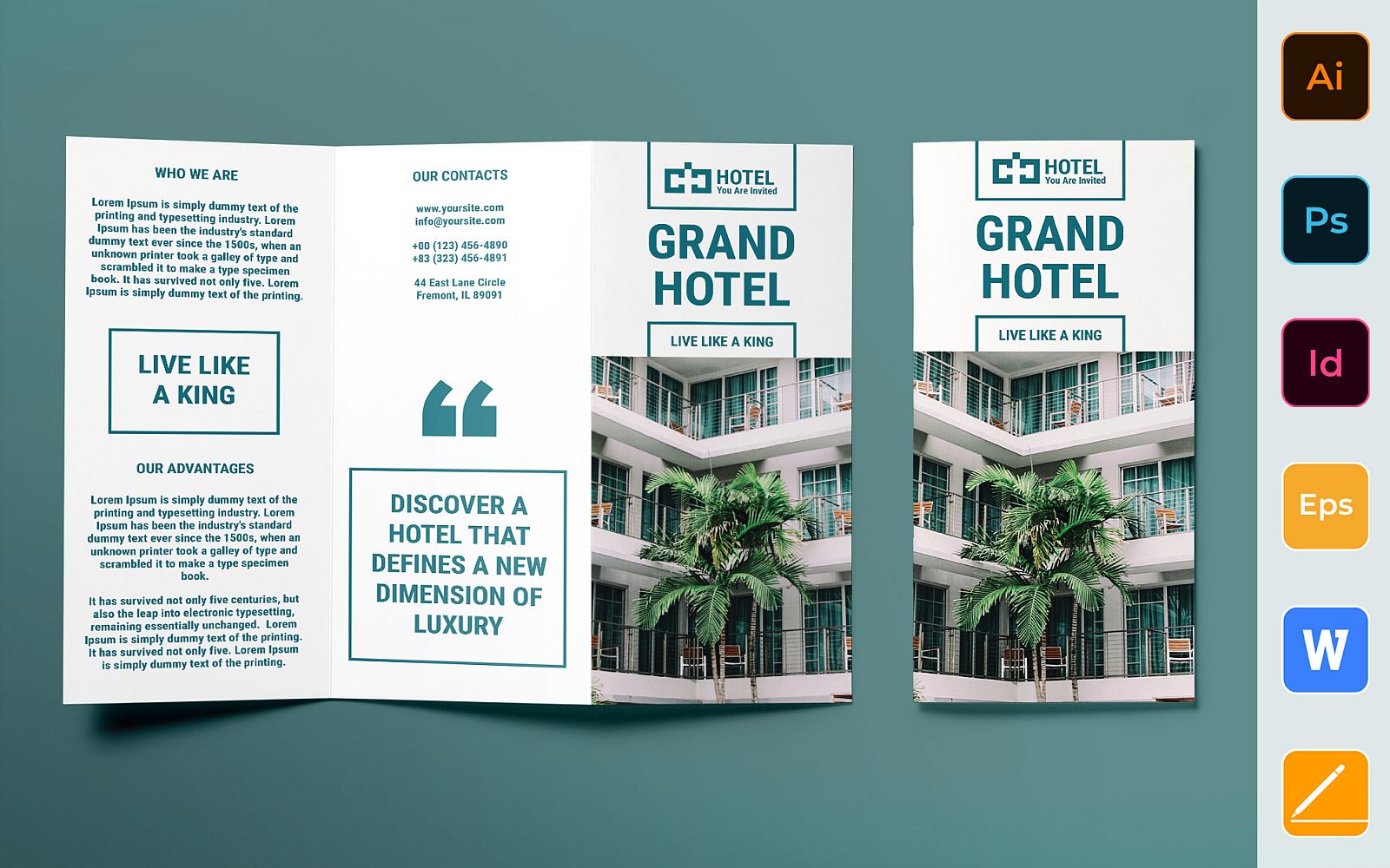 Download Фирменный стиль "Hotel Brochure Trifold - Corporate Identity Template" / Hotel Brochure Trifold - Corporate Identity Template - Фирменный стиль на тему графика brochure,trifold,template,corporate,company,branding,hotel,vacation,travel,resort,tourism,booking,white,green,pastel