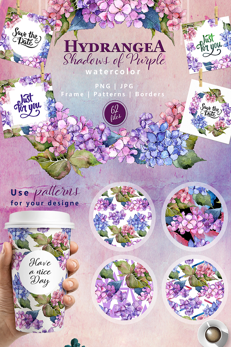 Download Бандл акварельных иллюстраций гортензий / Hydrangea PNG Watercolor Flower Set - Illustration - Иллюстрация на тему графика watercolor illustration watercolour drawing background textile colorful vintage paint purple hydrangea shadows flower decoration petal wildflower isolated rustic leaf foliage