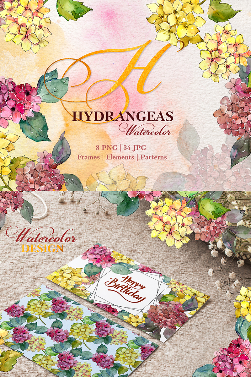 Download Иллюстрация "Hydrangeas Yellow-Pink Watercolor png - Illustration" / Hydrangeas Yellow-Pink Watercolor png - Illustration - Иллюстрация на тему графика hydrangeas yellow-pink watercolor png