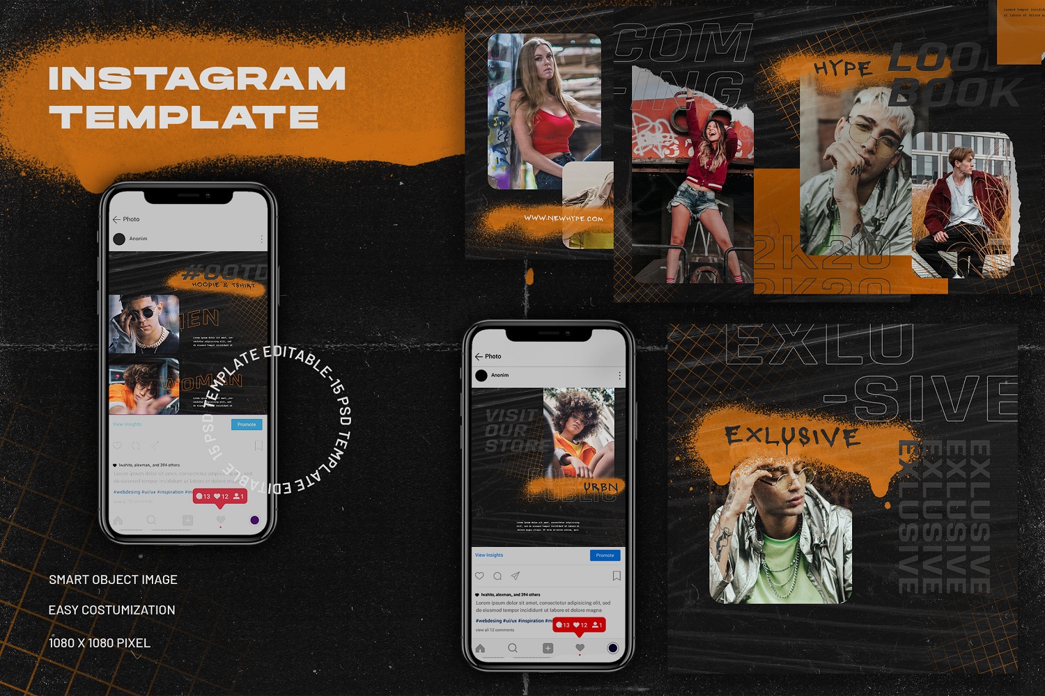 Download Шаблон для соцсетей "Hypebeast Instagram Post Template for Social Media" / Hypebeast Instagram Post Template for Social Media - Шаблон для соцсетей на тему графика creative,instagram,post,feed,fashion,hypebeast,stylish,lifestyle,sneakers,streetwear,minimal,urban,modern,clean,grunge