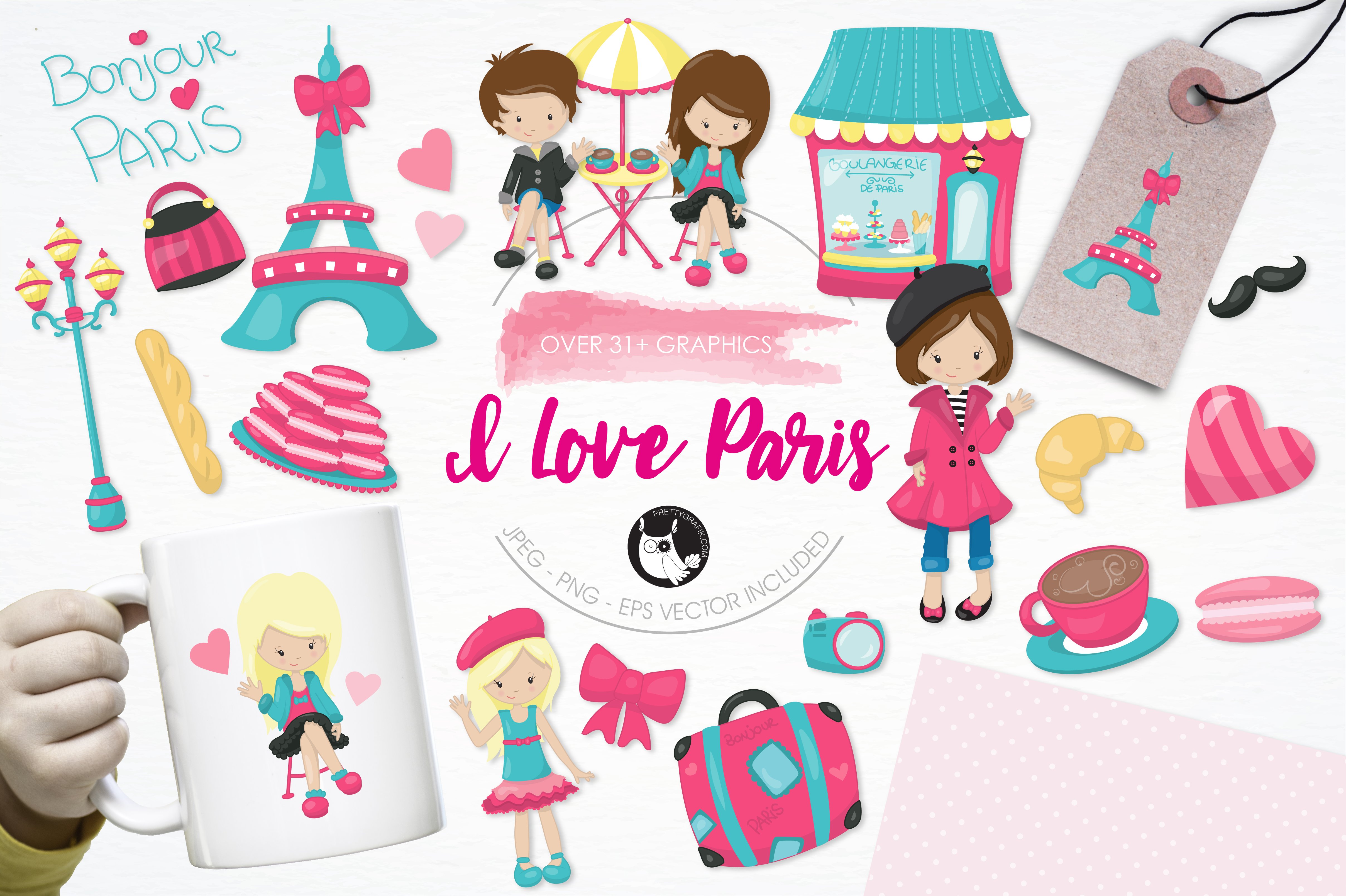 Download Vector "I love Paris illustration pack - Vector Image" / I love Paris illustration pack - Vector Image - Vector на тему графика illustration,coffee,vector,graphics,clipart,travel,clip art,cafe,camera,icons,paris,europe,eps,moustache,prettygrafik,vacation,croissant,baguette,macarons,bakery eiffel tower