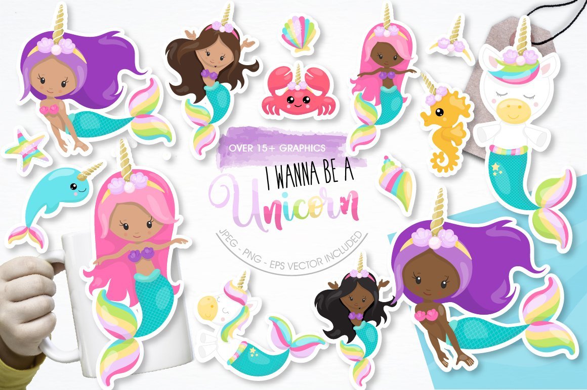 Download Vector "I wanna be a Unicorn - Vector Image" / I wanna be a Unicorn - Vector Image - Vector на тему графика scrapbook,scrapbooking,clipart,clip art,ocean,unicorn,castle,prettygrafik,crabs,mermaid clipart,mermaids,vector art,sea shell,sea horse,mermaid unicorn