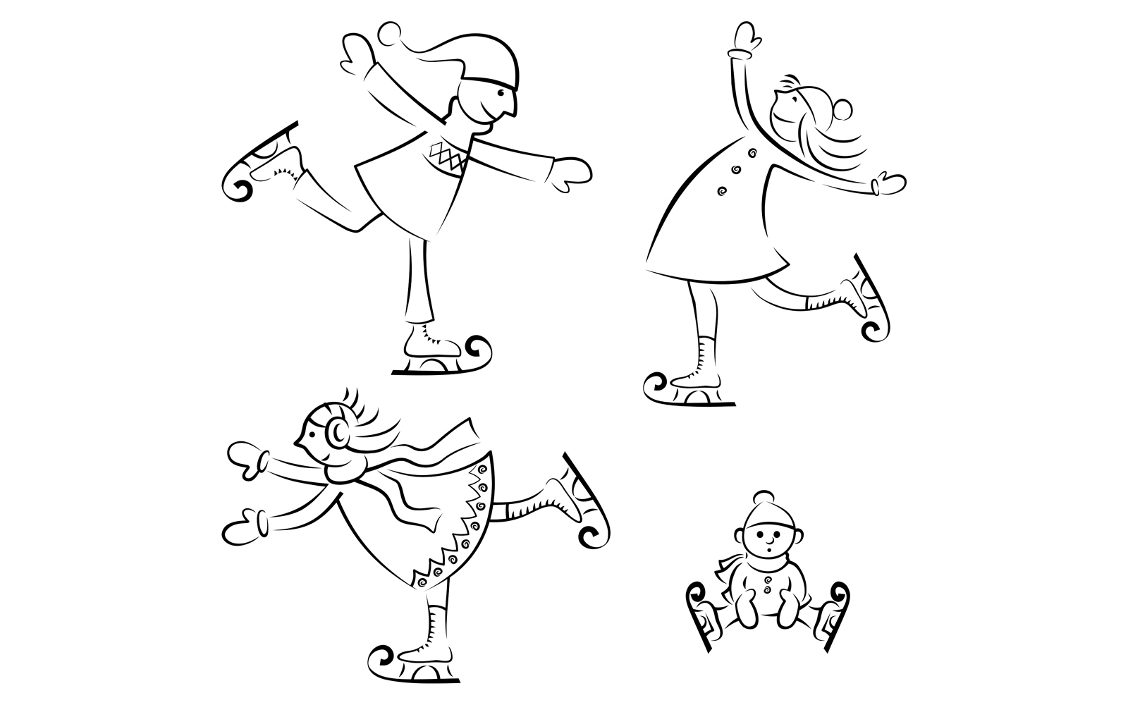 Download Иллюстрация "Ice Skating Characters Line Art - Illustration" / Ice Skating Characters Line Art - Illustration - Иллюстрация на тему графика ice skating,ice skate,figure skating,gliding,sliding,glide,child,kid,children,baby,toddler,small,couple,girl,boy,ice,character,mascot,logo,symbol