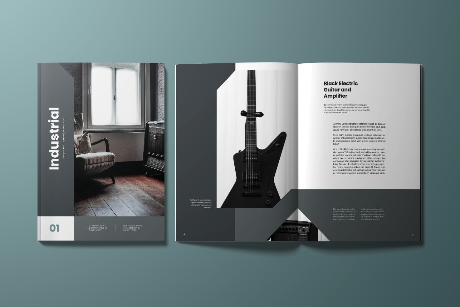 Download Magazine Template "Industrial Magazine Template" / Industrial Magazine Template - Magazine Template на тему графика magazine,template,print,editorial,catalog,brochure,look,layout,lifestyle,elegant,modern,clean,design,cover,page