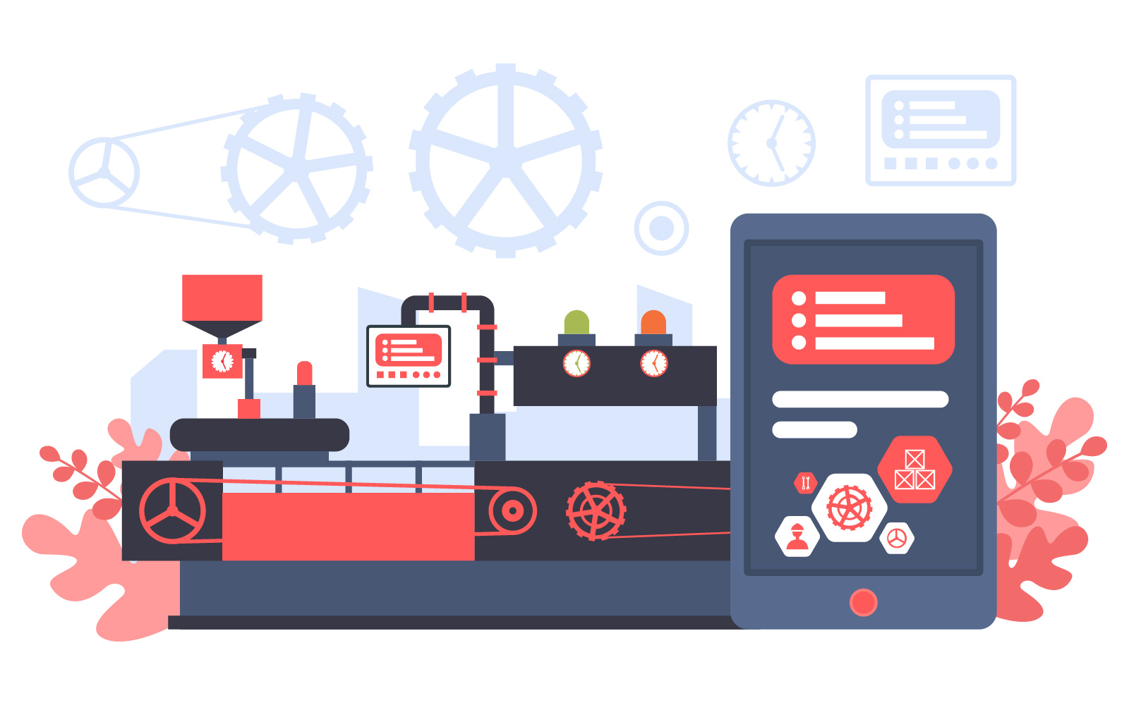 Download Иллюстрация "Industrial Modern Concept - Illustration" / Industrial Modern Concept - Illustration - Иллюстрация на тему графика industry,factory,concept,conveyor,production,robotic,assembly,illustration,vector,business,engine,interior,inside,manufacturing,line,robot,logistics,processing,transport,manufacture