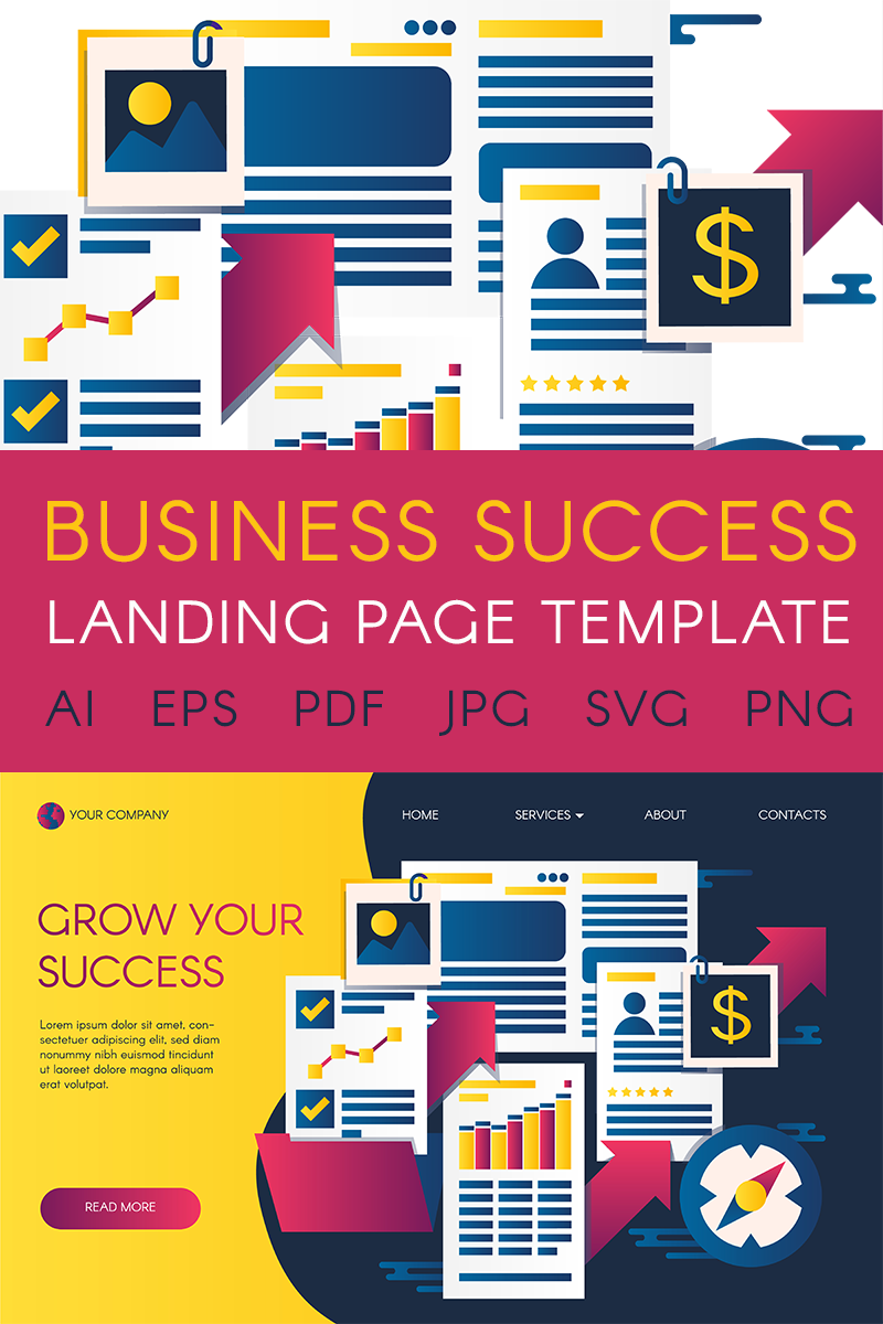 Download Иллюстрация "Infographics Of Business Success Landing Template - Illustration" / Infographics Of Business Success Landing Template - Illustration - Иллюстрация на тему графика analysis growth resource statistics success strategy development marketing management economy finance professional rating business analytics document graphics file solution work