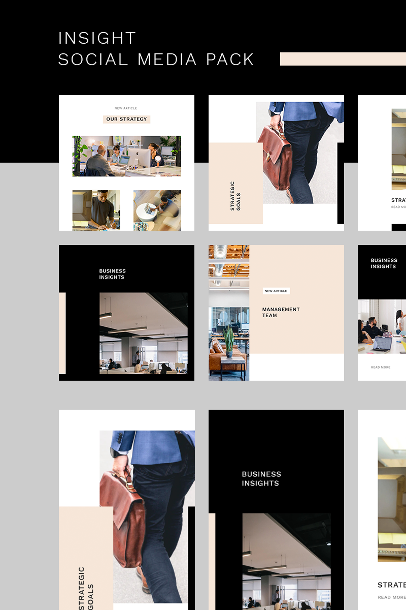 Download Шаблон для соцсетей "Insight Instagram Pack Social Media Template" / Insight Instagram Pack Social Media Template - Шаблон для соцсетей на тему графика business corporate entrepreneur blog magazine company technology startup promotion freelancer post instagram stories template facebook psd banner