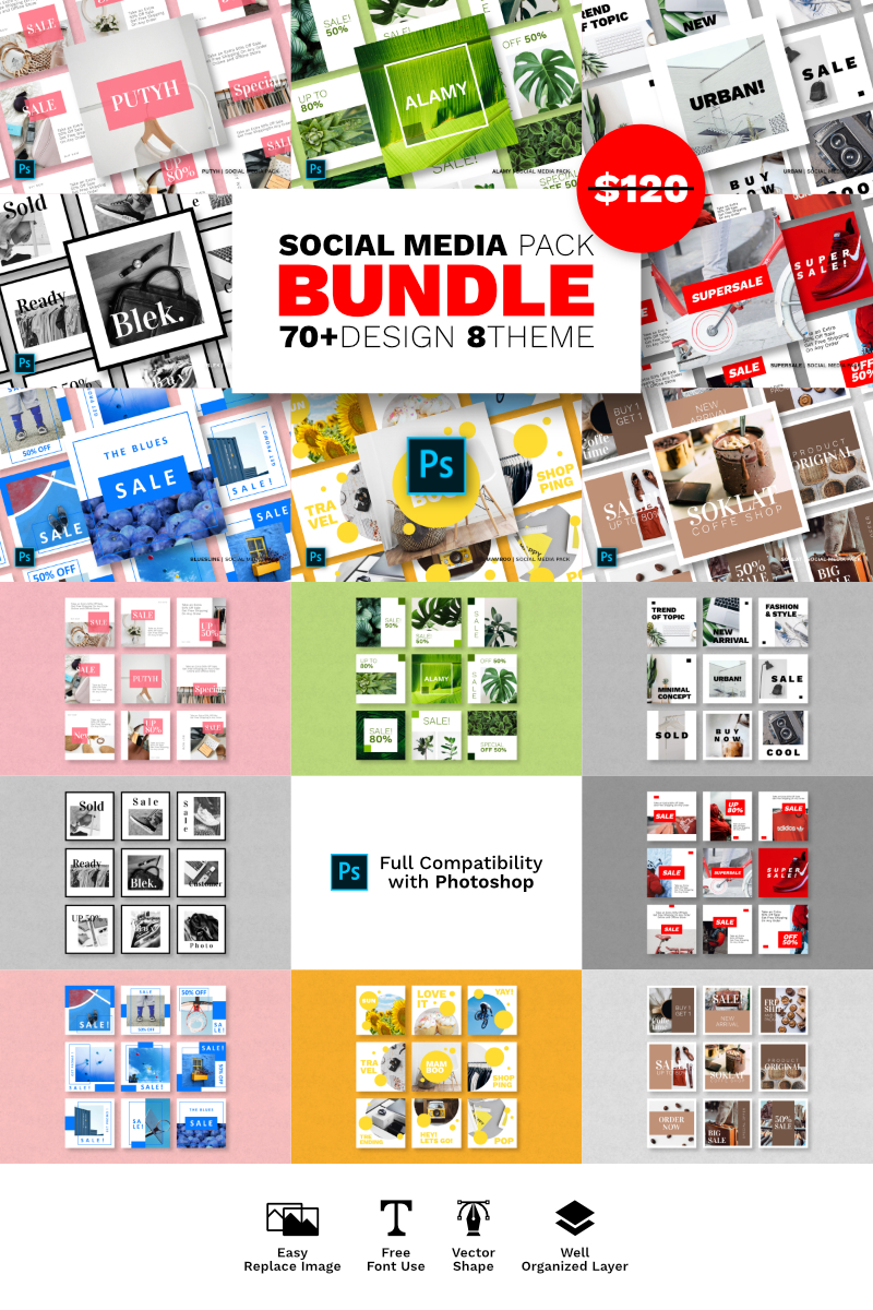 Download Шаблон для соцсетей "Instagram Pack Bundle Social Media Template" / Instagram Pack Bundle Social Media Template - Шаблон для соцсетей на тему графика instagram facebook twitter banner template sale media social background design vector fashion promotion stories instagramtemplates