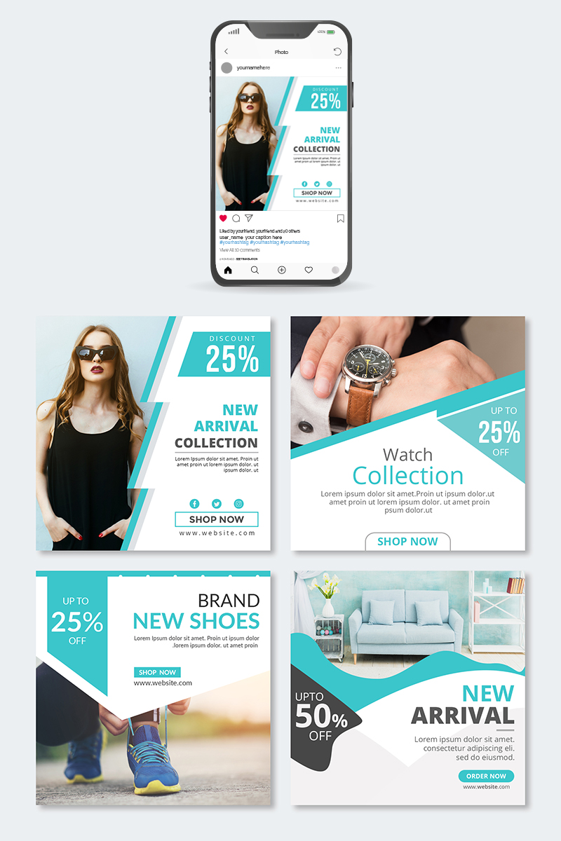 Download Шаблон для соцсетей "Instagram Post Collection Social Media Template" / Instagram Post Collection Social Media Template - Шаблон для соцсетей на тему графика abstract cover design technology logo design template geometric background banner facebook fashion social media blue instagram shopping marketing layout shape