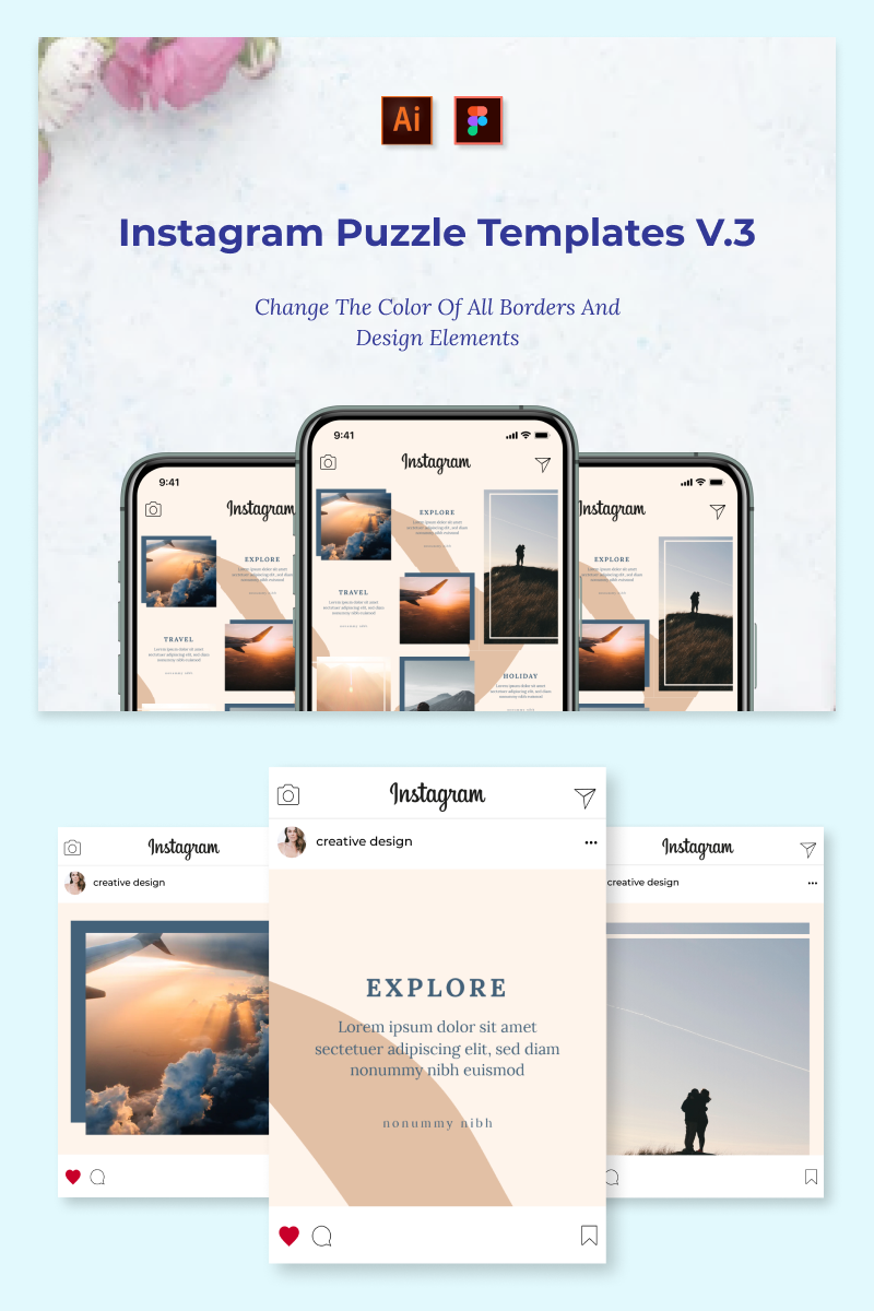 Download Шаблон для соцсетей "Instagram Puzzle Template for Social Media" / Instagram Puzzle Template for Social Media - Шаблон для соцсетей на тему графика travel minimalist gallery instagram twitter post puzzle booking social media square stories template holiday facebook ig