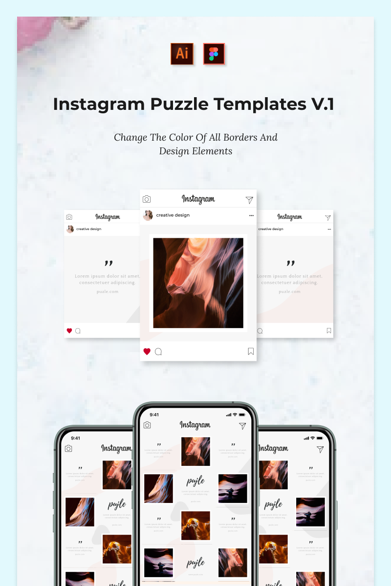 Download Шаблон для соцсетей "Instagram Puzzle Template V.1 for Social Media" / Instagram Puzzle Template V.1 for Social Media - Шаблон для соцсетей на тему графика clean minimalist gallery instagram twitter post puzzle sale shop social media square stories template trendy simple modern facebook banner design