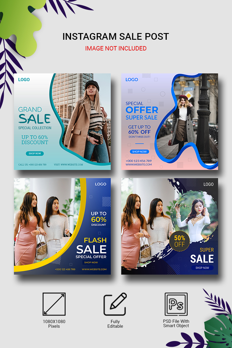 Download Шаблон для соцсетей "Instagram Sale Post Banners Set Social Media Template" / Instagram Sale Post Banners Set Social Media Template - Шаблон для соцсетей на тему графика background,banner,abstract,background,sale,template,fashion,social,media,tag,instagram,shopping,brush,promotion,web,shop,discount,price,offer,sales