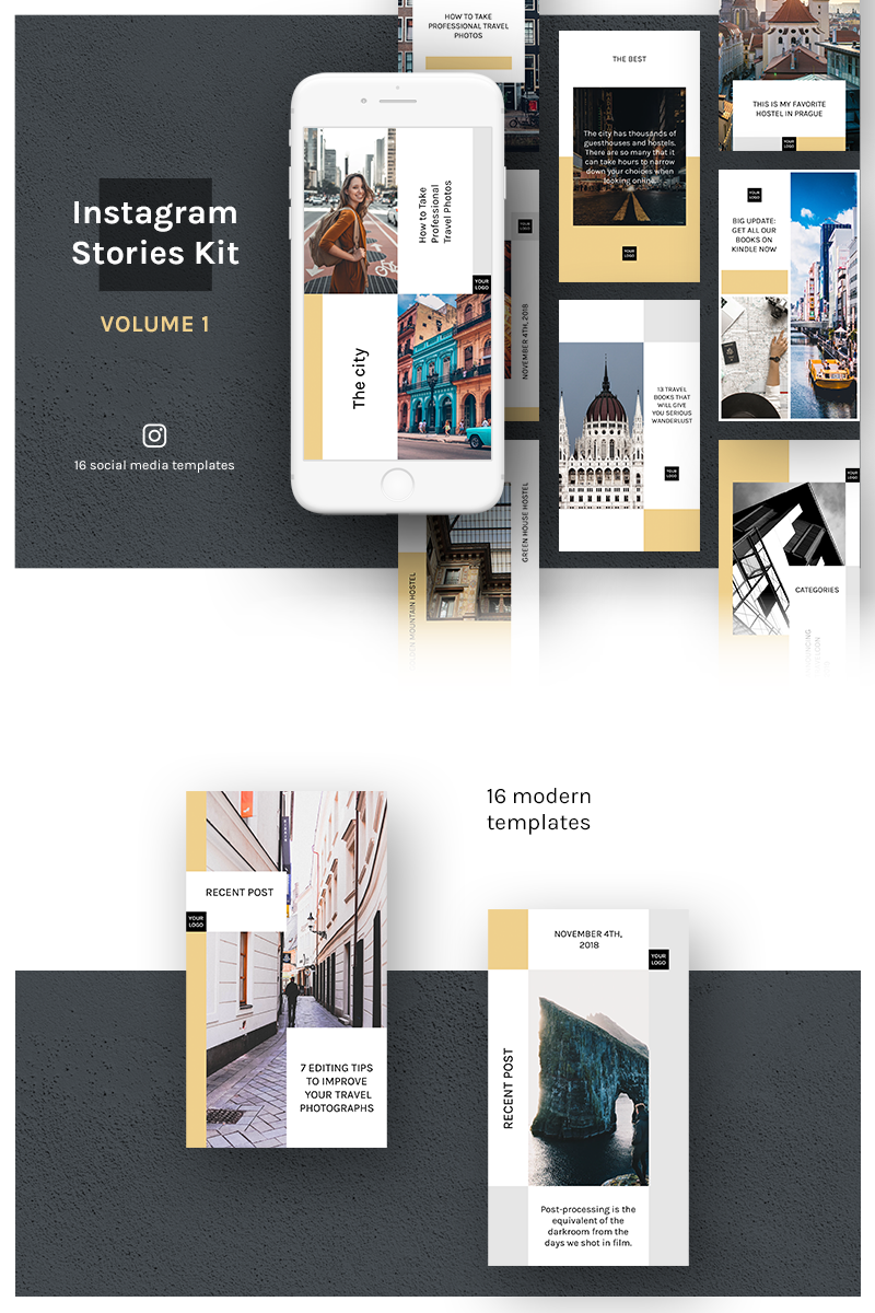 Download Шаблон для соцсетей "Instagram Stories Kit (Vol.1) Social Media Template" / Instagram Stories Kit (Vol.1) Social Media Template - Шаблон для соцсетей на тему графика social blog post instagram stories fashion luxury trendy travel blogger promotion beauty modern business