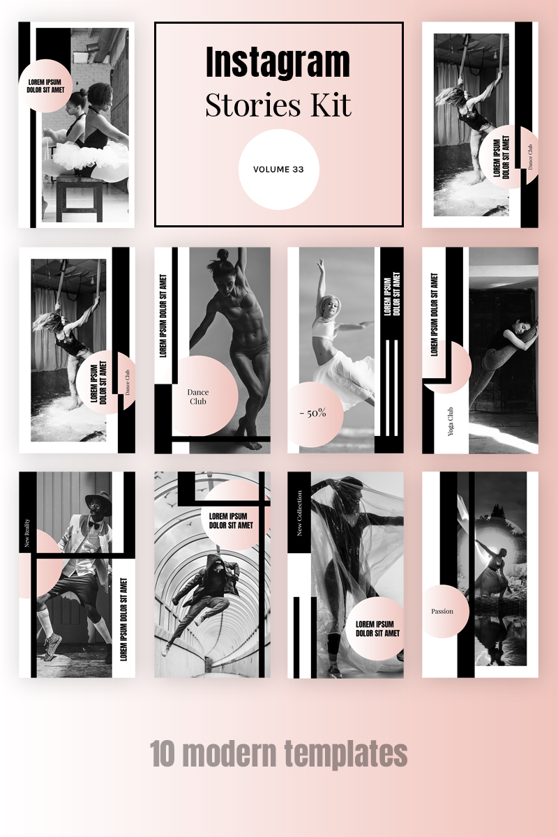 Download Шаблон для соцсетей "Instagram Stories Kit (Vol.33) Social Media Template" / Instagram Stories Kit (Vol.33) Social Media Template - Шаблон для соцсетей на тему графика dance club ballet studio instagram post stories story modern trendy pink promo gym banner feminine blog influencer photographer blackandwhite