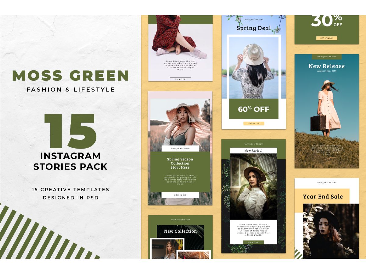 Download Шаблон для соцсетей "Instagram Template Moss Green for Social Media" / Instagram Template Moss Green for Social Media - Шаблон для соцсетей на тему графика adobe photoshop,brand,casual,instagram,lifestyle,online,platform,posts,potraits,shop,social media,stories,template,trendy