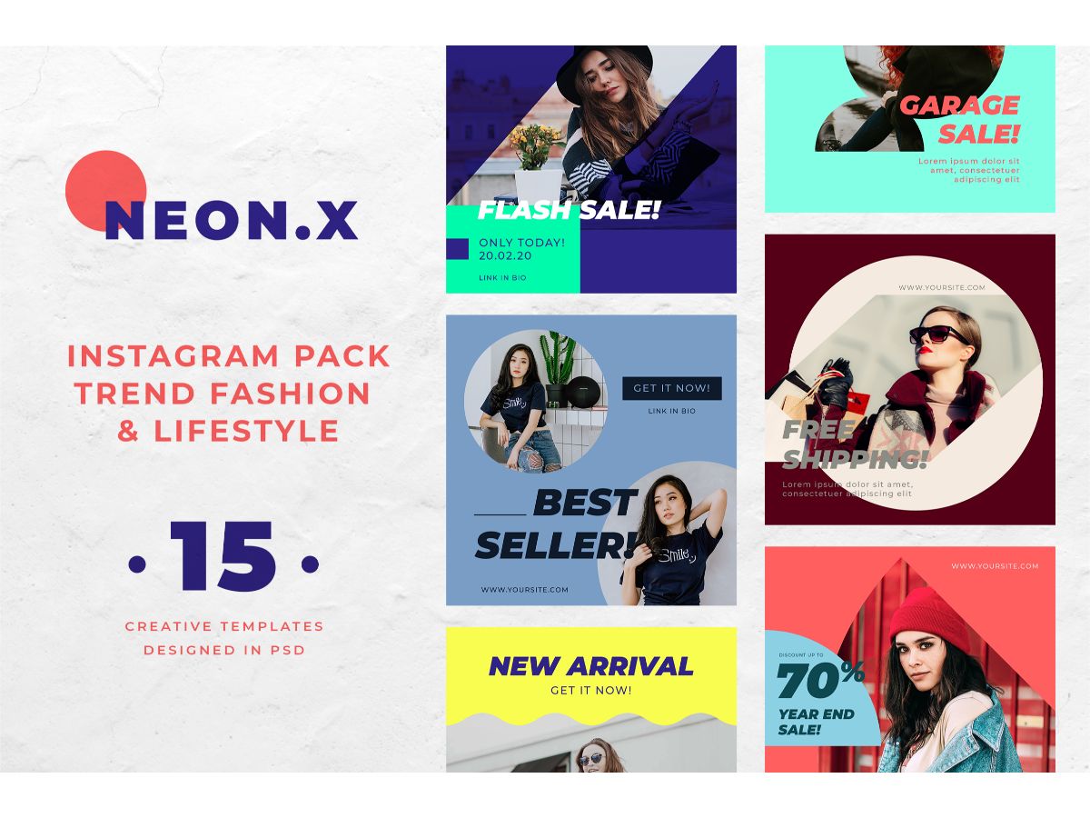 Download Шаблон для соцсетей "Instagram Template Neon.X for Social Media" / Instagram Template Neon.X for Social Media - Шаблон для соцсетей на тему графика adobe photoshop,brand,casual,instagram,lifestyle,online,platform,posts,potraits,shop,social media,stories,template,trendy