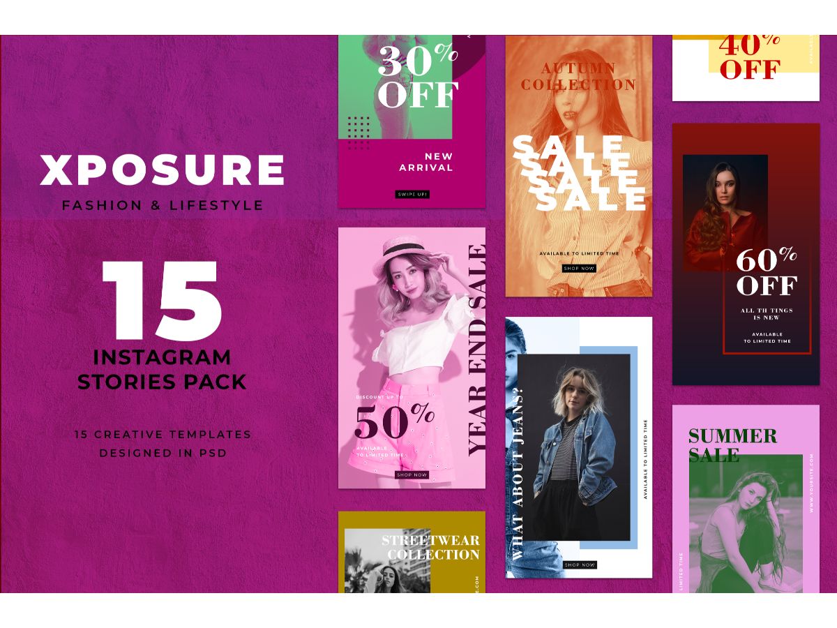 Download Шаблон для соцсетей "Instagram Template Xposure for Social Media" / Instagram Template Xposure for Social Media - Шаблон для соцсетей на тему графика adobe photoshop,brand,casual,instagram,lifestyle,online,platform,posts,potraits,shop,social media,stories,template,trendy