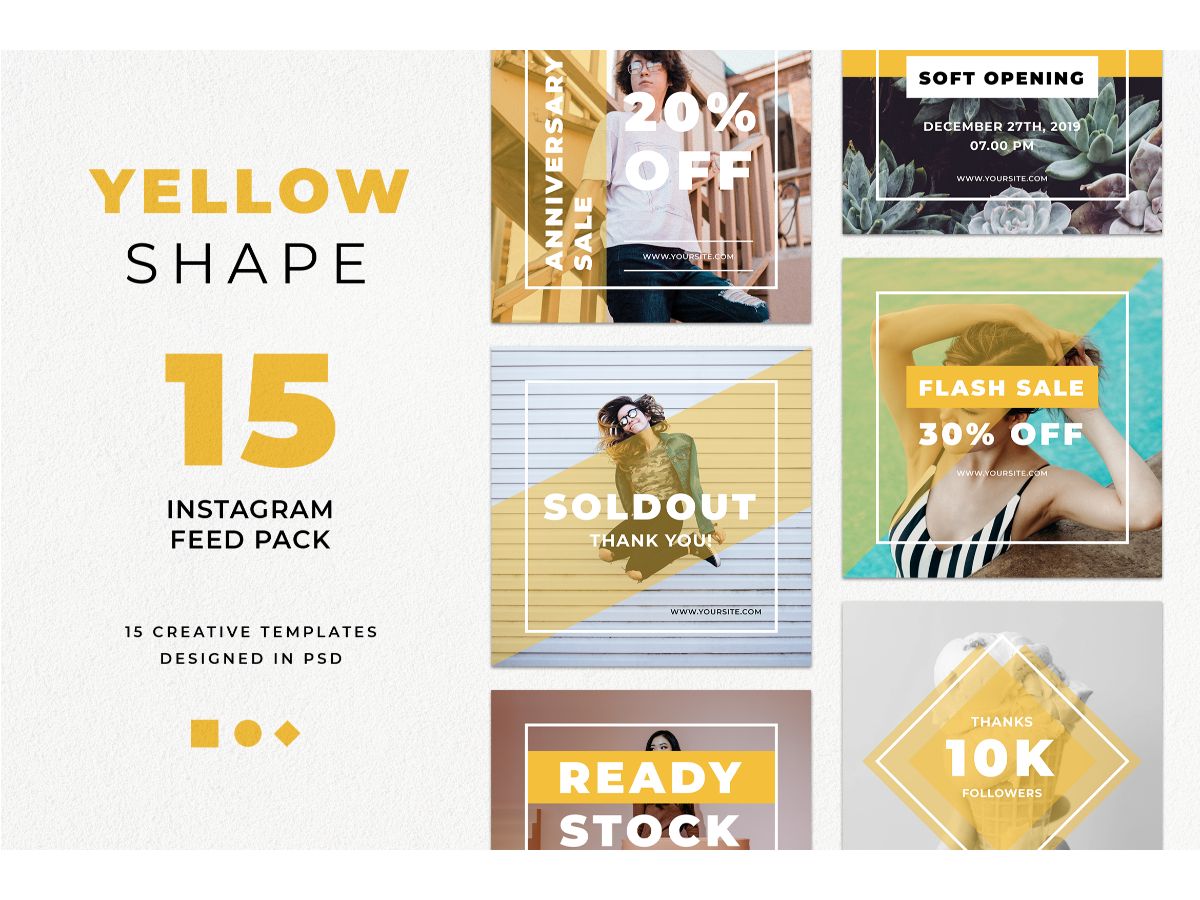 Download Шаблон для соцсетей "Instagram Template Yellow Shape for Social Media" / Instagram Template Yellow Shape for Social Media - Шаблон для соцсетей на тему графика adobe photoshop,brand,casual,instagram,lifestyle,online,platform,posts,potraits,shop,social media,stories,template,trendy