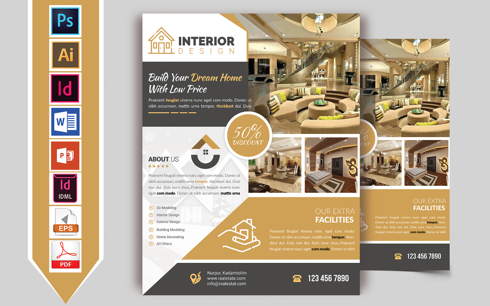 Download Фирменный стиль "Interior Design Flyer Vol-01 - Corporate Identity Template" / Interior Design Flyer Vol-01 - Corporate Identity Template - Фирменный стиль design,interior,interior-design,home,home-design,home-decoration,decoration,building,building-design,real-estate,land,psd,ai,word,powerpoint,flyer,poster,brochure